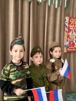 21.02.2024Праздник 23 февраля в детском саду – хороший повод для воспитания у дошкольников чувства патриотизма, сопричастности к лучшим традициям своей Родины, формирования у детей гордости за славных защитников Отечества. Это праздник всех людей, которые стоят на страже нашей Родины. Это праздник настоящих мужчин — смелых и отважных, ловких и надёжных, а также праздник мальчиков, которые вырастут и станут защитниками Отечества, а пока мы знакомим детей и рассказываем, что такое армия, почему 23 февраля — День Защитника Отечества. Воспитываем уважительное отношение к военному человеку, человеку в форме, прививаем любовь к Родине, и развиваем патриотические чувства. Такие мероприятия, проведённые с детьми, закладывают в их душах зёрнышки патриотизма, чувства долга перед Родиной. Дети с задором исполняли песни.